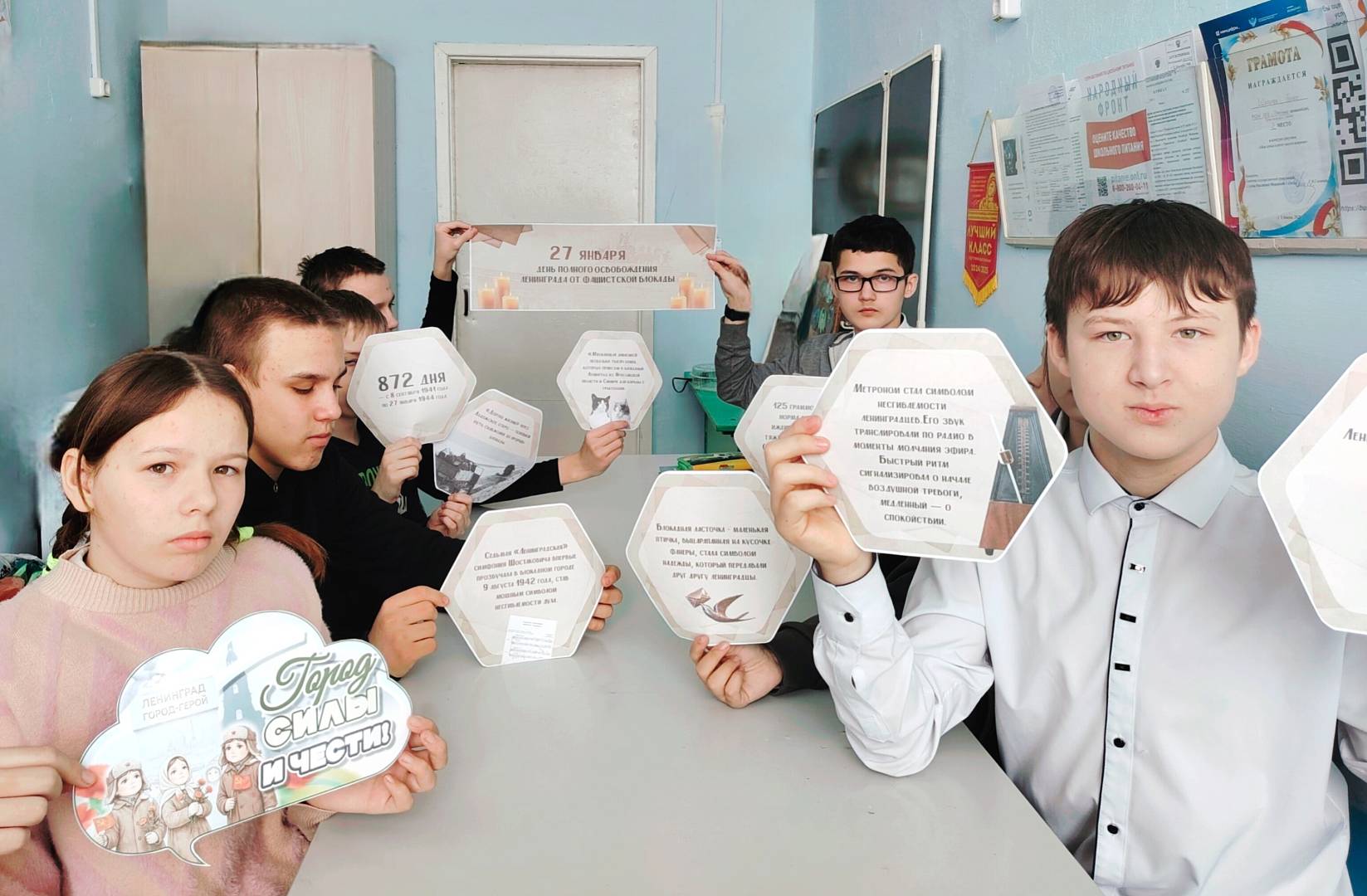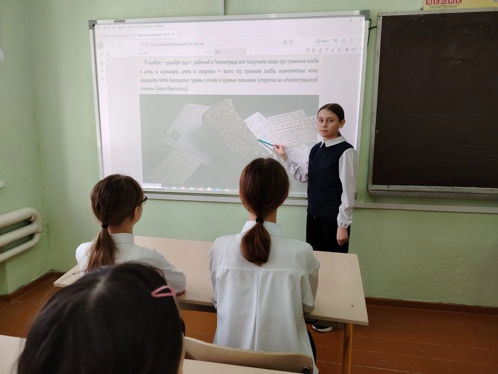 День полного освобождения Ленинграда от фашистской блокадыВ нашей школе прошли классные часы, уроки памяти, посвященные важной исторической дате – Дню полного освобождения Ленинграда от фашистской блокады. Этот день отмечается ежегодно 27 января, в память о событиях 1944 года, когда завершилась героическая оборона города на Неве. Учителя рассказали о том, как жители Ленинграда выдержали тяжелые испытания во время блокады, которая длилась 872 дня. Несмотря на жестокие условия, люди продолжали жить, работать и бороться за свою свободу. Дети обсудили мужество и стойкость ленинградцев, их несгибаемую волю к победе. Ребята внимательно слушали рассказ о том, как дети помогали взрослым. Как стояли у станков, помогали в сборе урожая, рубили дрова, ухаживали за ранеными, чистили улицы от снега. Вместе со взрослыми дежурили на чердаках и крышах при налётах вражеской авиации, тушили зажигательные бомбы, возникшие пожары. С 20 ноября 1941 года в пятый раз сократился хлебный паёк: рабочие стали получать в сутки 250 граммов хлеба, а неработающие – по 125 г. Также прозвучал рассказ о судьбе юной ленинградки Тани Савичевой, чей дневник является одним из свидетельств преступлений фашизма: голодающая девочка записывала в блокнот даты смерти от голода всех своих родных.