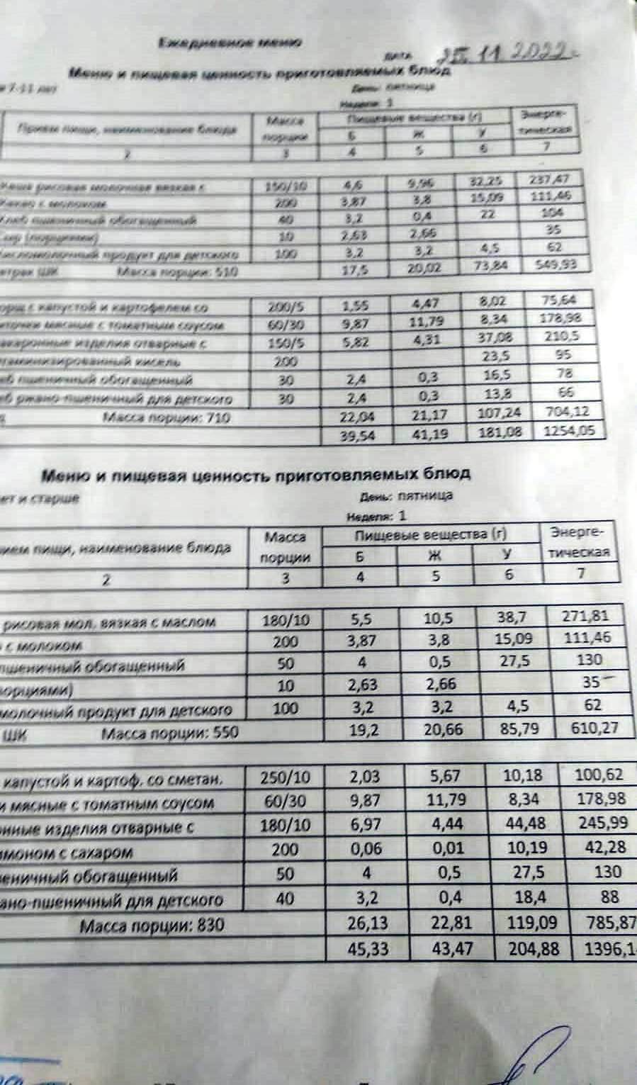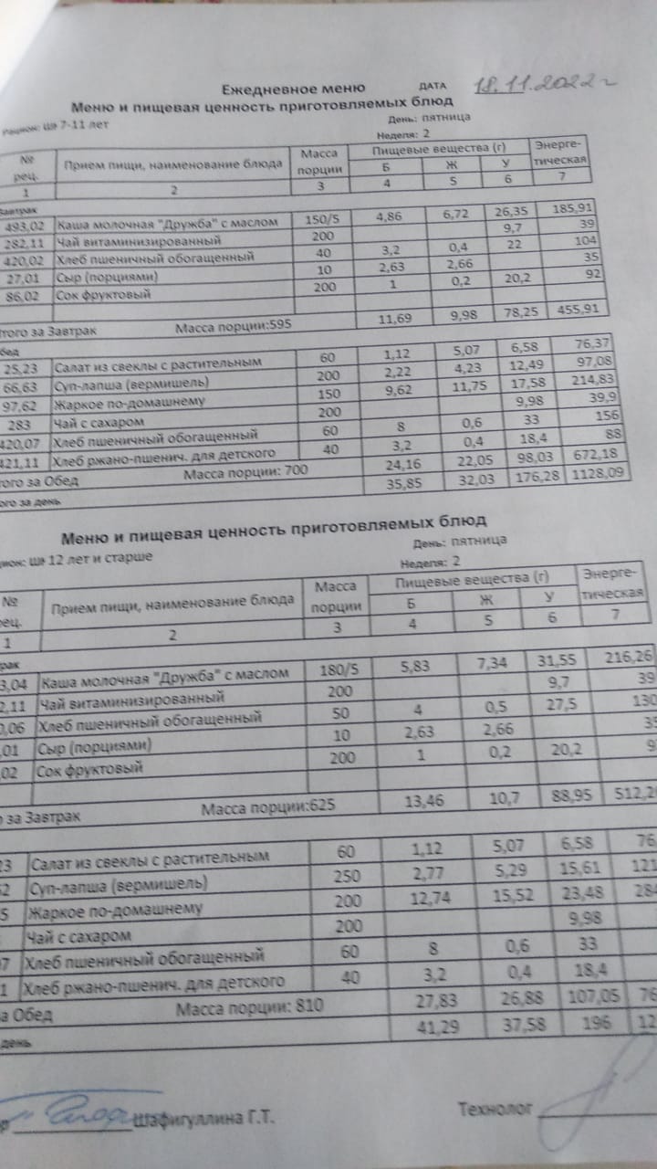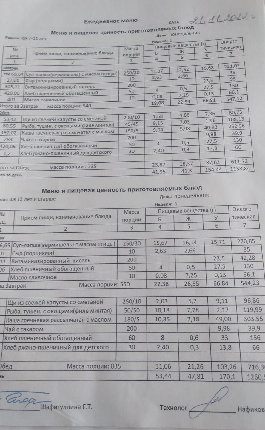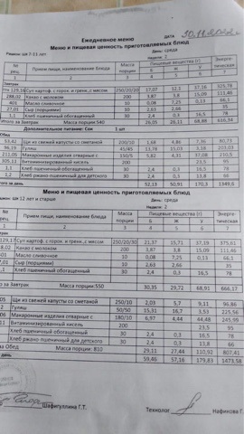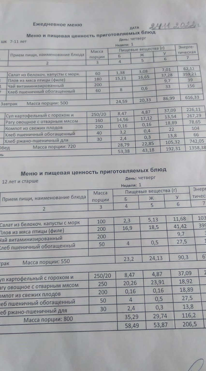 Стоимость школьного питания