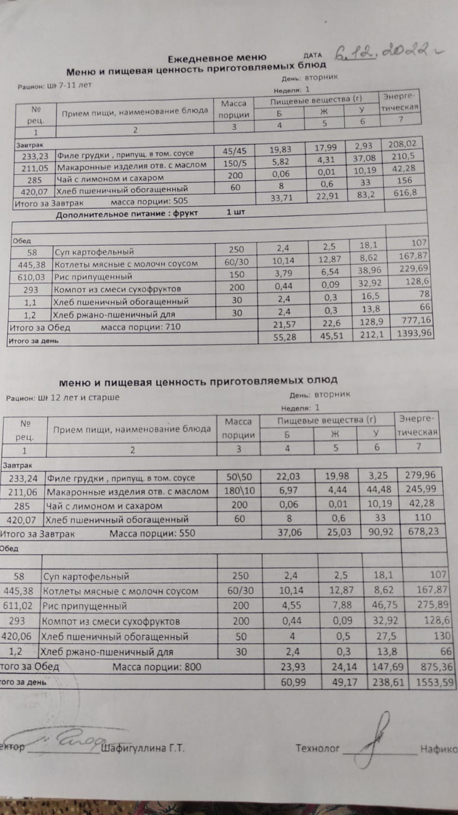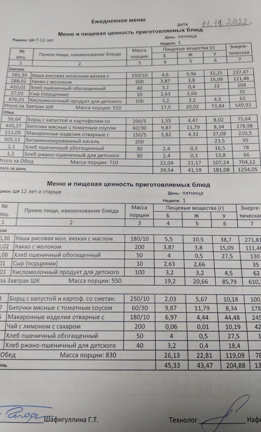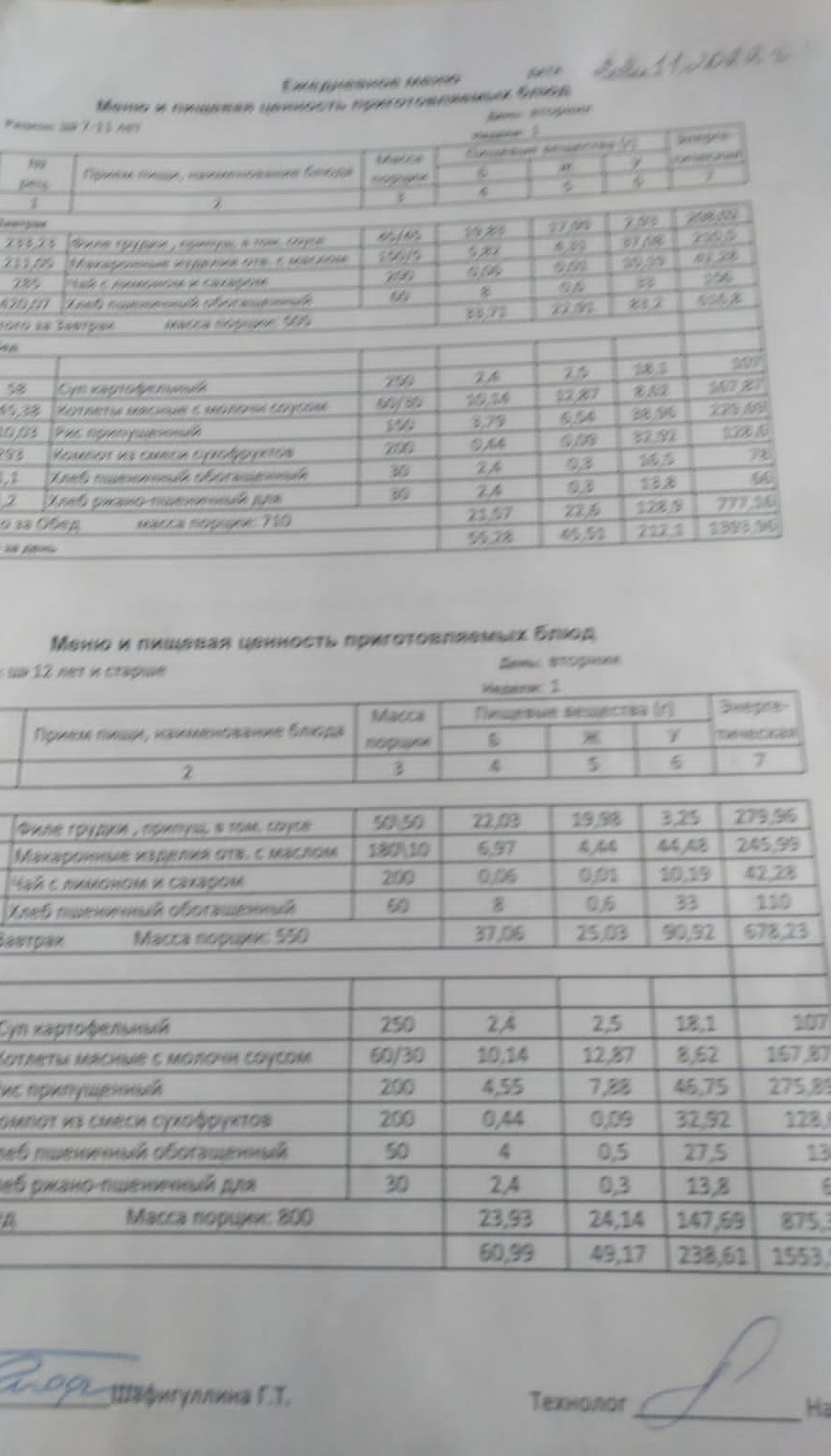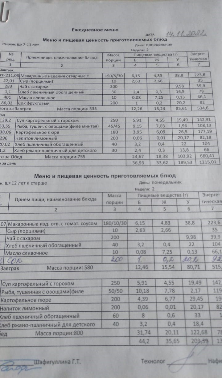 Двухнедельное меню