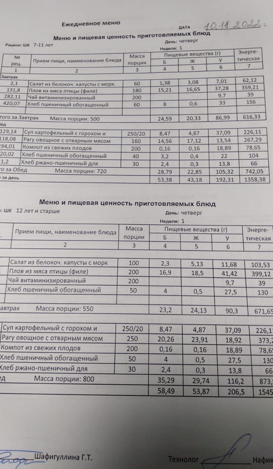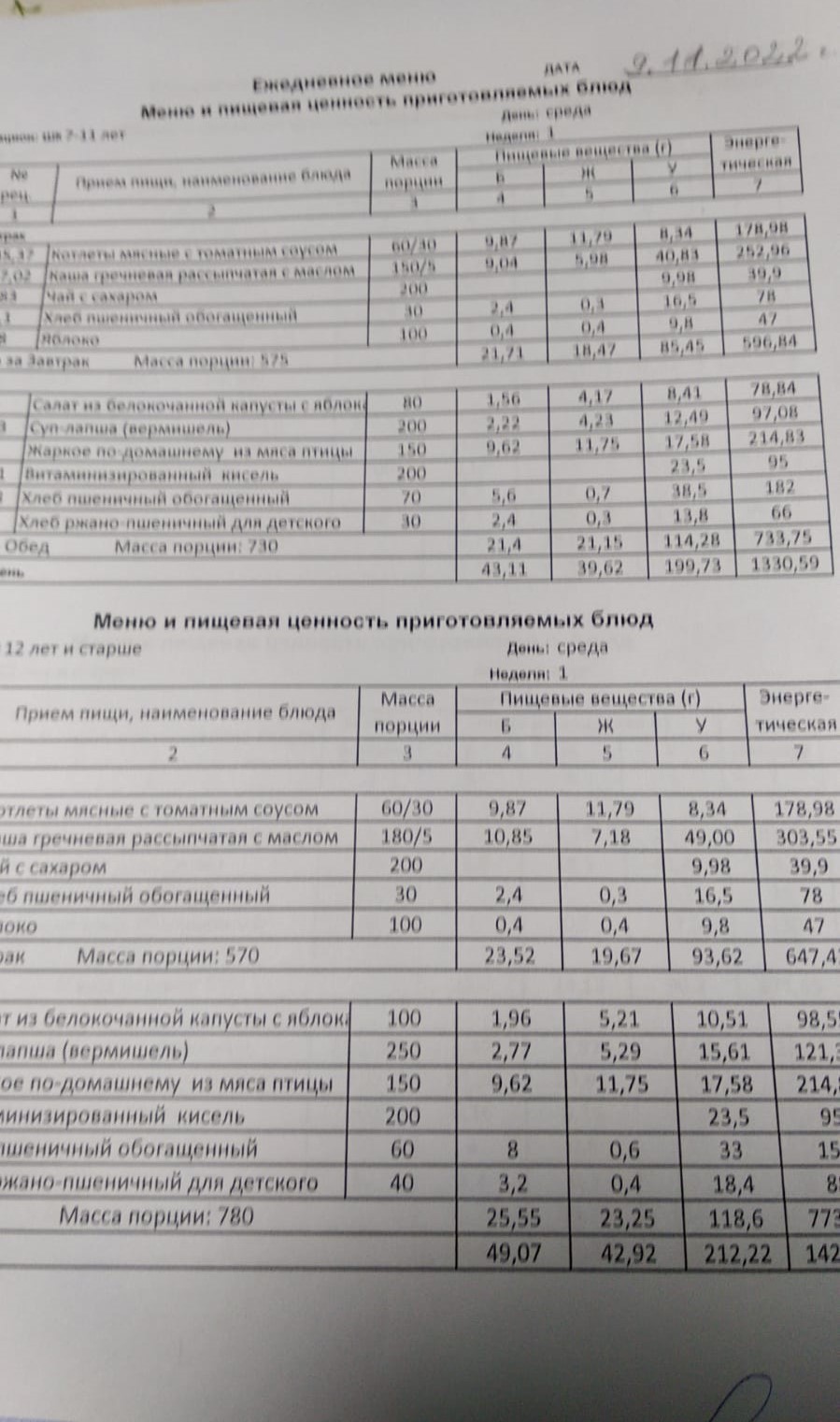 Школьное питание