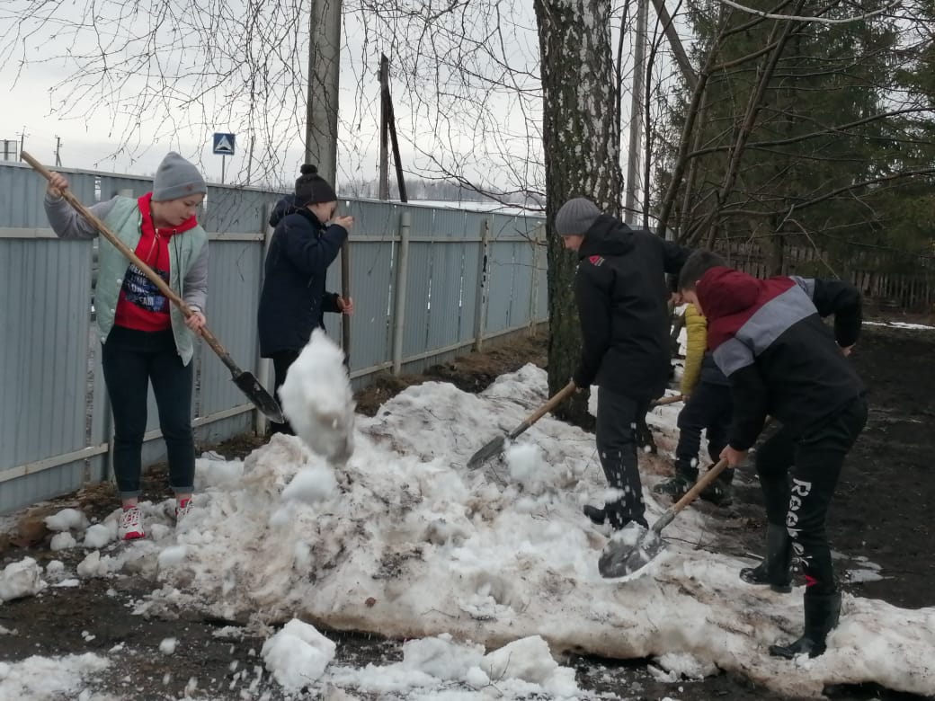 Ученики начальных классов старательно наводили порядок в своих любимых кабинетах. Сотрудники школы и учащиеся с 5 по 9 класс вместе приводили в порядок школьную территорию: разрыхляли последние сугробы, раскидывали снег на прилегающем участке, собирали мусор.